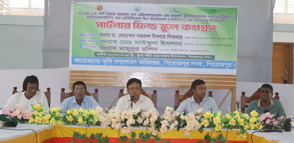 প্রোগ্রাম এন এগ্রিকালচারাল এন্ড রুরার ট্রান্সফর্মেশন অফ নিউটেশন, এন্টারপ্রেনরশিপ এন্ড রেসিলিয়েন্স ইন বাংলাদেশ (পার্টনার) প্রকল্পের আওতায় পিরোজপুরে দিনব্যাপী এ অনুষ্ঠিত হয়। ২৮ মে বুধবার পিরোজপুর সদর উপজেলার শহীদ ওমর ফারুক মিলনায়তনে কৃষি সম্প্রসারণ অধিদপ্তর সদর উপজেলার আয়োজন এ কর্মসূচি অনুষ্ঠিত হয়। এতে প্রধান অতিথি ছিলেন কৃষি সম্প্রসারণ অধিদপ্তরের বরিশাল অঞ্চলের অতিরিক্ত পরিচালক ড. মোহাম্মদ নজরুল ইসলাম সিকদার। পিরোজপুর সদর উপজেলা নির্বাহী কর্মকর্তা মামুনুর রশিদ এর সভাপতিত্বে অনুষ্ঠানে আরো উপস্থিত ছিলেন পিরোজপুর কৃষি সম্প্রসারণ অধিদপ্তর এর উপ-পরিচালক মোঃ সাইফুল ইসলাম, সদর উপজেলা কৃষি কর্মকর্তা শিপন চন্দ্র ঘোষ, জেলা কৃষক দলের সভাপতি মোঃ নাছির আহমেদ বাচ্চু।কংগ্রেসে কৃষি, পুষ্টি,