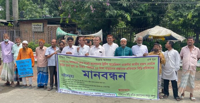 বিড়ি শিল্পে শুল্ক প্রত্যাহারের দাবিতে মানববন্ধন ও স্মারকলিপি প্রদান